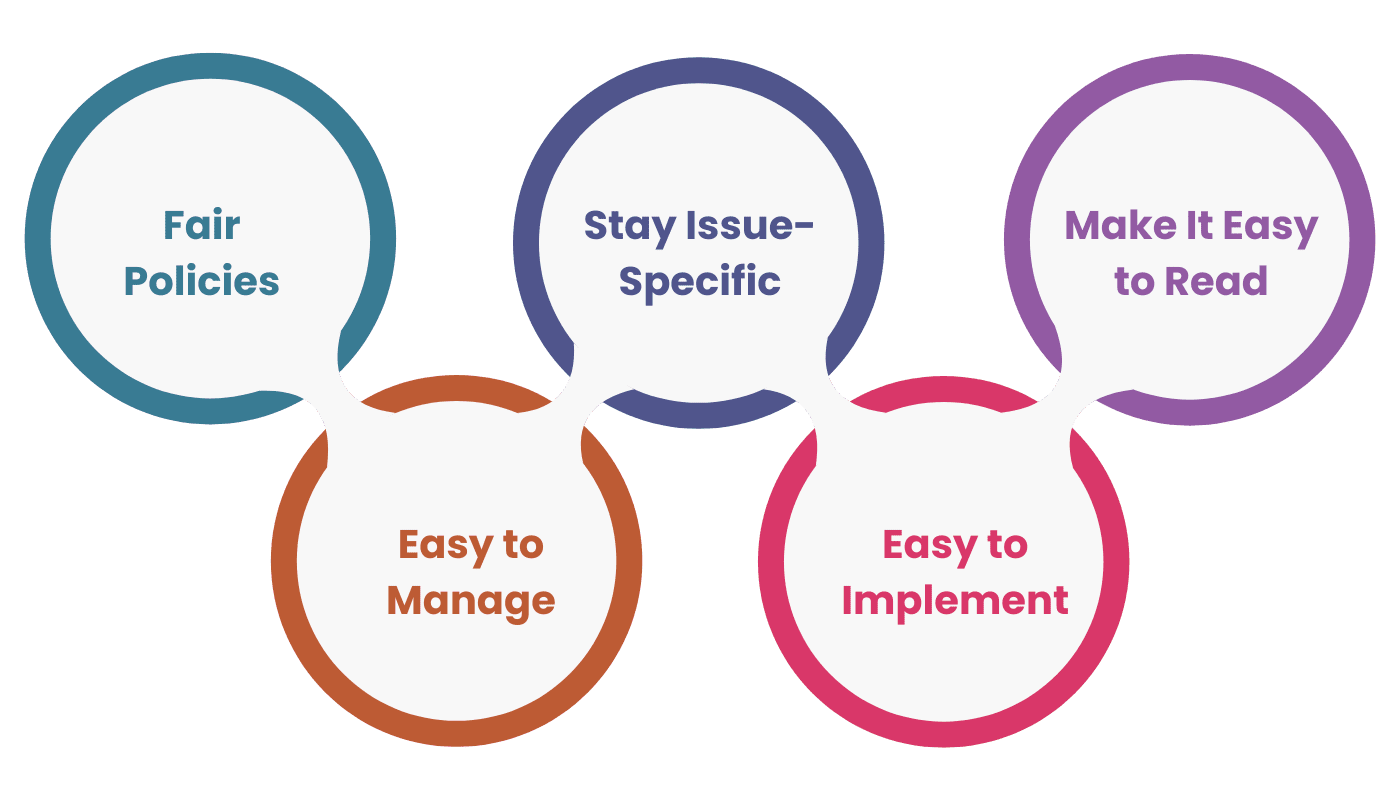 Short and sweet—that’s what a good policy looks like. Address the issue and back it up with a clear procedure. The more focused you are, the easier it is for your team to stick to it. A bloated, overcomplicated policy is just setting your team up for failure.