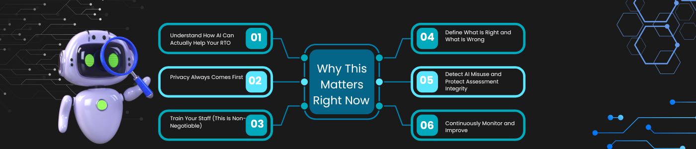 AI is not going away. RTOs that use it safely will save time, improve quality, and impress auditors. RTOs that ignore it will fall behind. RTOs that use it recklessly will face privacy fines, invalid assessments, and audit findings.