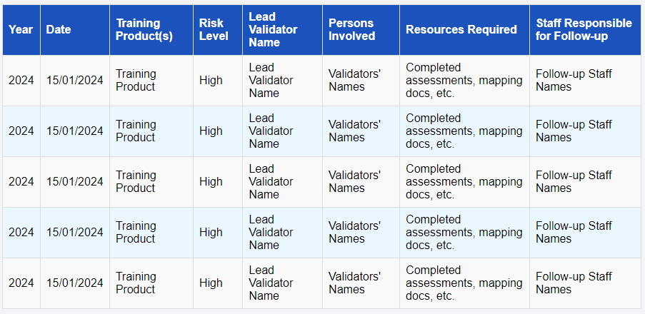 The timing of your validation activities is crucial. Based on industry experience, term breaks are often the best time for conducting validations, as trainers and staff are less occupied with student activities. It’s important to notify all relevant stakeholders well in advance and provide them with the necessary documents to review. Effective communication ensures that everyone is prepared and that the validation process runs smoothly.