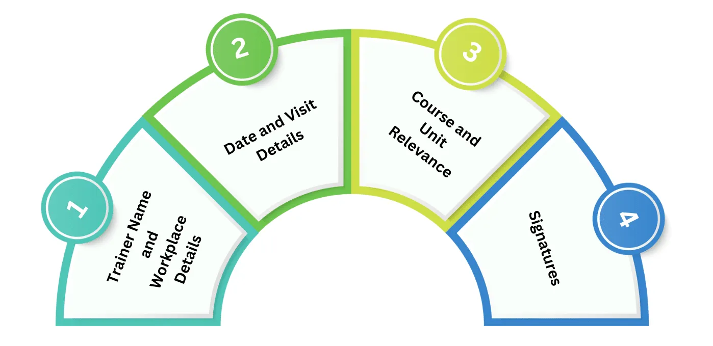 • Trainer Name and Workplace Details: Start by filling in basic information about yourself and the workplace you are visiting.