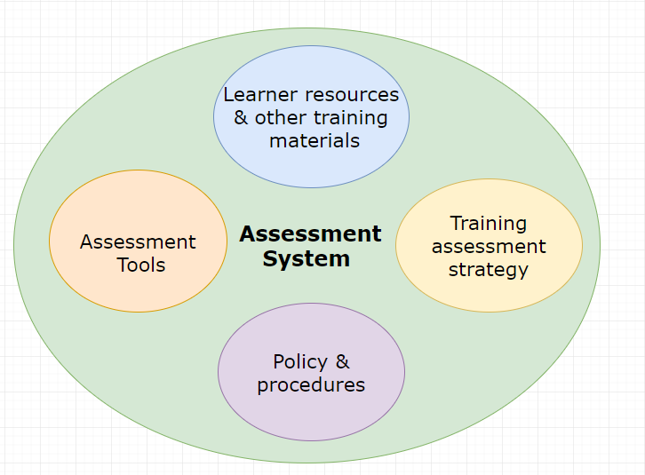 According to ASQA, the assessment system is a collection of documented policies and procedures, including assessment material and tools to make sure assessment is consistent and fulfils the principles of assessment and rules of evidence.
