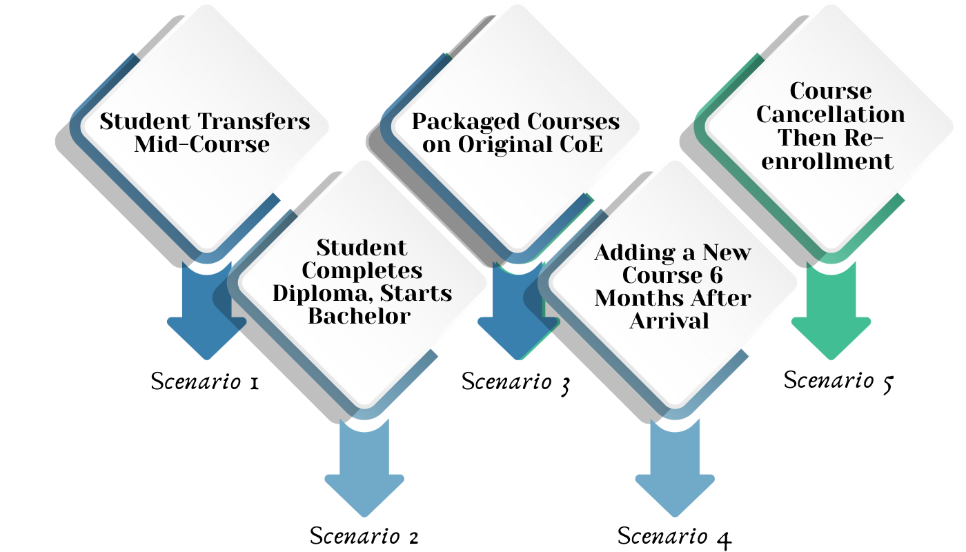 - Packaged courses - specified in the original CoE for which the visa was granted