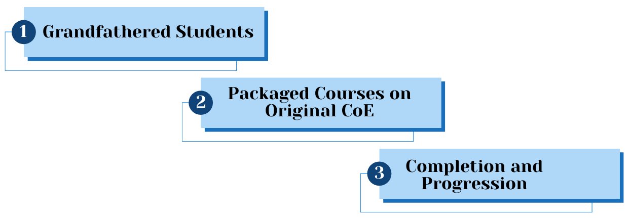 Important: The course must have been specified in the original CoE. Adding new courses later does NOT qualify for this exception.