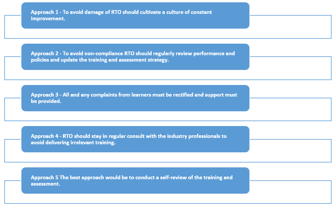 Approach 2 – To avoid non-compliance RTO should regularly review performance and policies and update the training and assessment strategy.